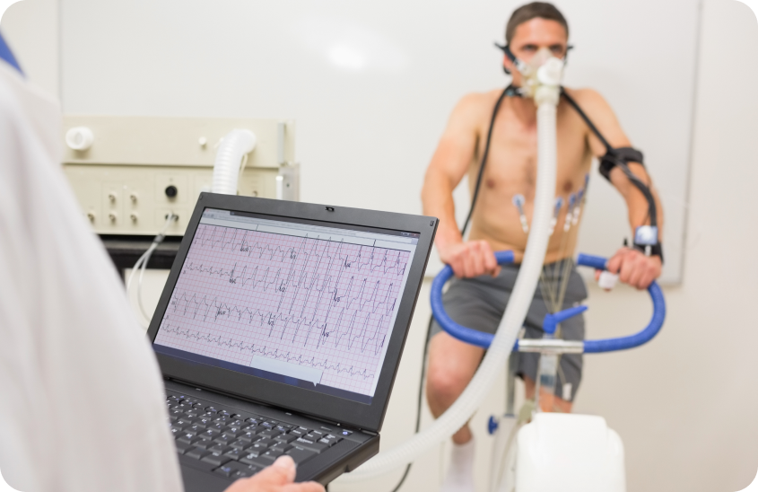 Throughout the exam, a cardiologist closely monitors your heart’s activity on the ECG screen. You will be asked to stop once the essential data has been collected or if you are uncomfortable.