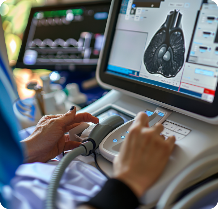 - Echocardiography – Ultrasound Application for evaluating the function of heart and health of the valves.